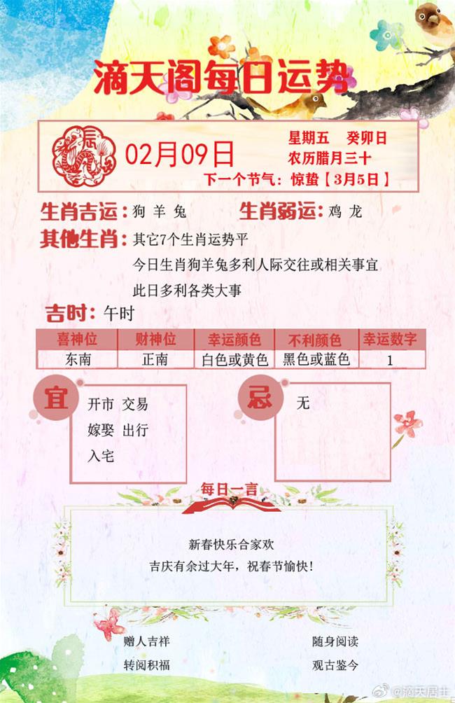 滴天居士2024年2月9日生肖运势