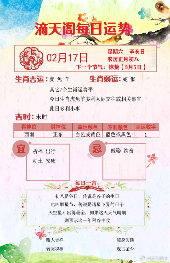 滴天居士2024年2月17日生肖运势