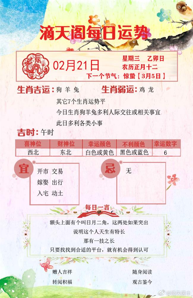 滴天居士2024年2月21日生肖运势